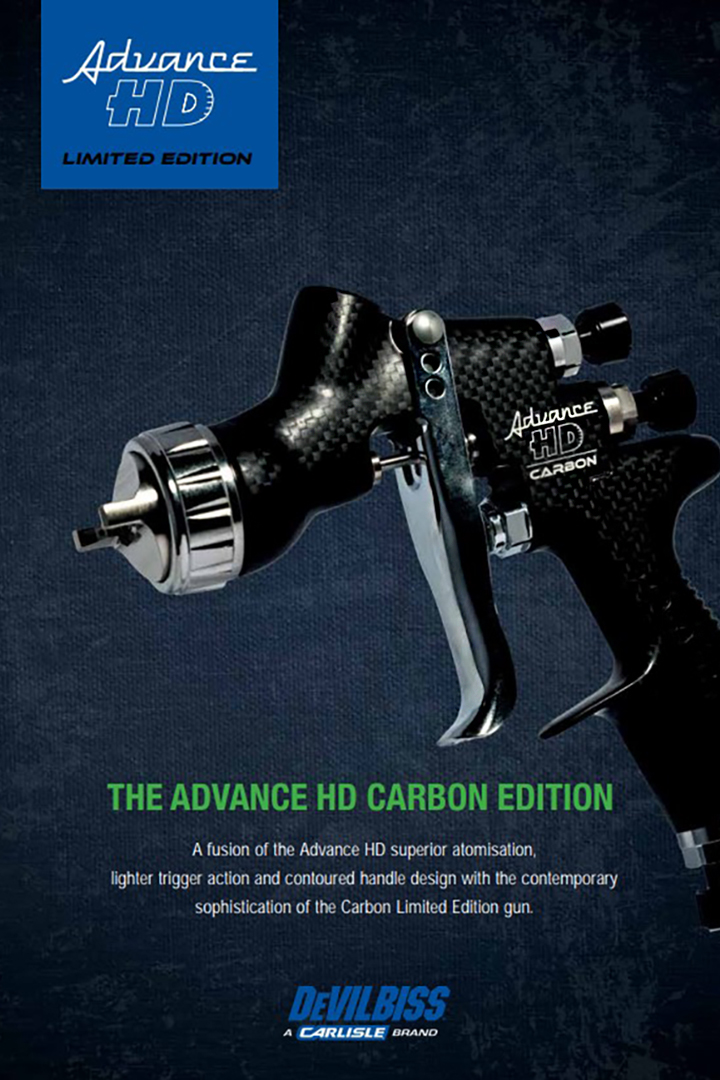 This Carbon Limited Edition gun enhances the unrivalled high performance and productivity of the Advance HD gun. New design technology enables the precision-engineered air caps and fluid tips to produce superior atomisation with consistent even distribution throughout the spray pattern.