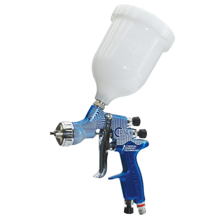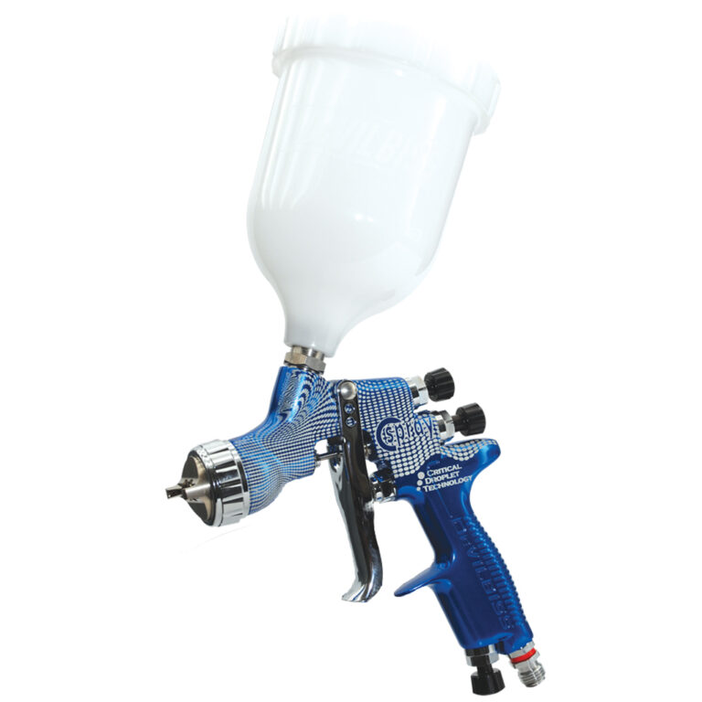 Developed in close collaboration with leading paint manufacturers, this Devilbiss spray gun features CDT (Critical Droplet Atomisation Technology) air cap technology. According to the company, each CDT air cap is spray tested with paint in 12 different air cap angle positions and each position is then compared to a master spray pattern to ensure optimum performance in terms of fan size, fan shape, droplet distribution and spray fan concentricity.