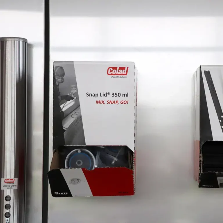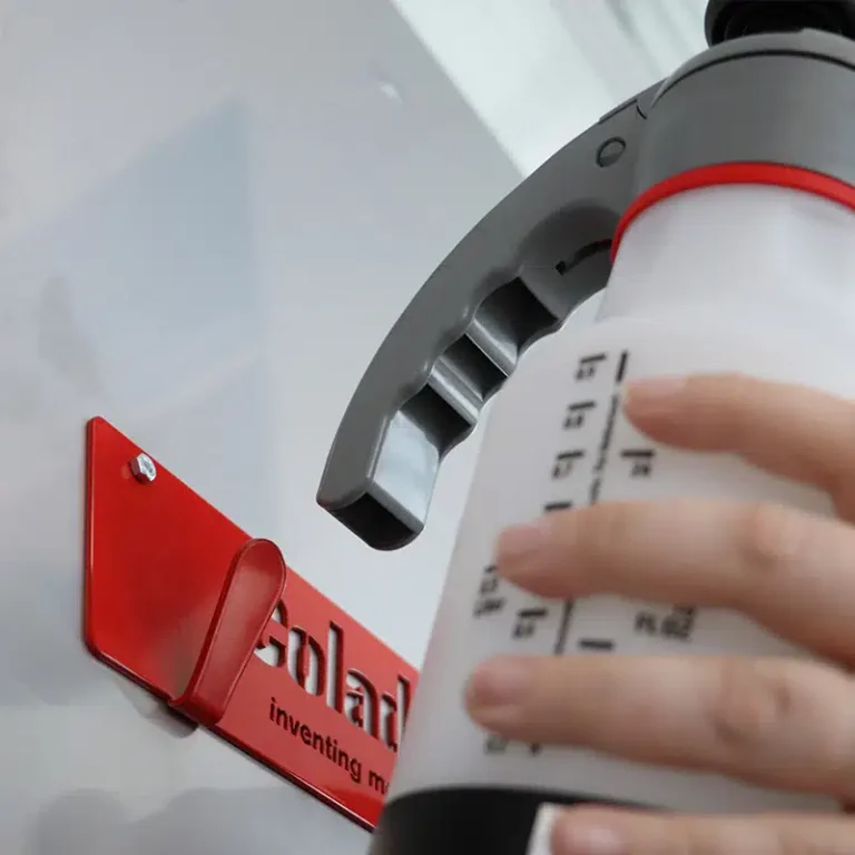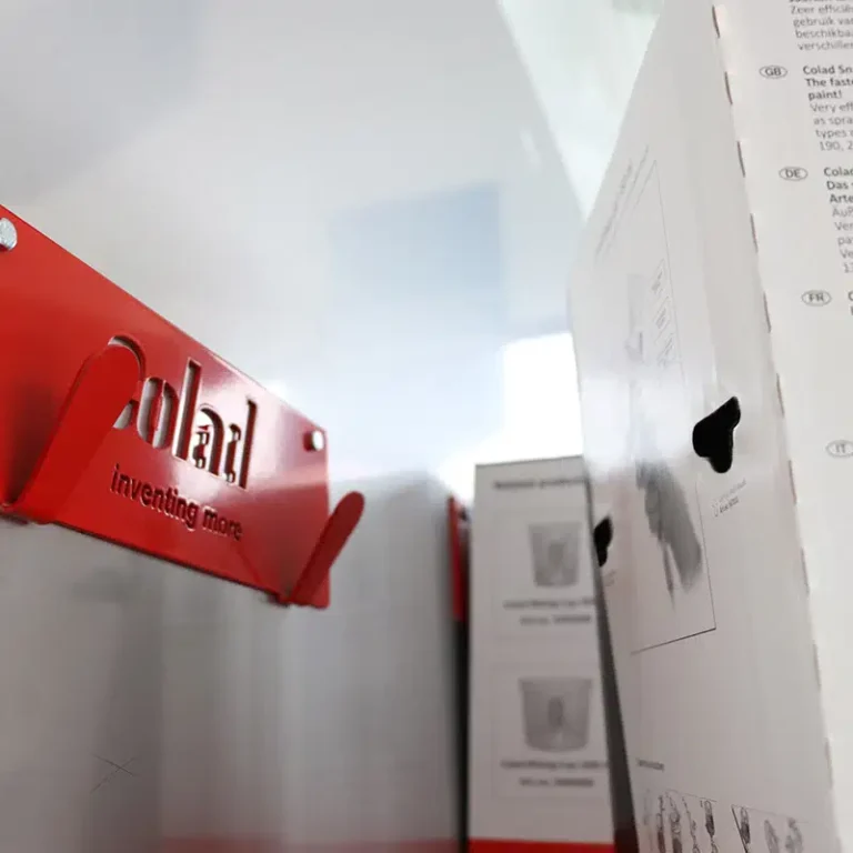 This Universal Bracket is a multi-purpose product. It can be used to hold one box of Colad Snap Lid®, Colad Turbomix™ Paintsaver™, Colad Degreasing Wipes Turquoise or two pieces of the Colad Pump Sprayer Ultimate or Premium. The bracket’s hooks are designed to perfectly fit into the dispenser boxes and the handle of the Pump Sprayer Ultimate and Premium.