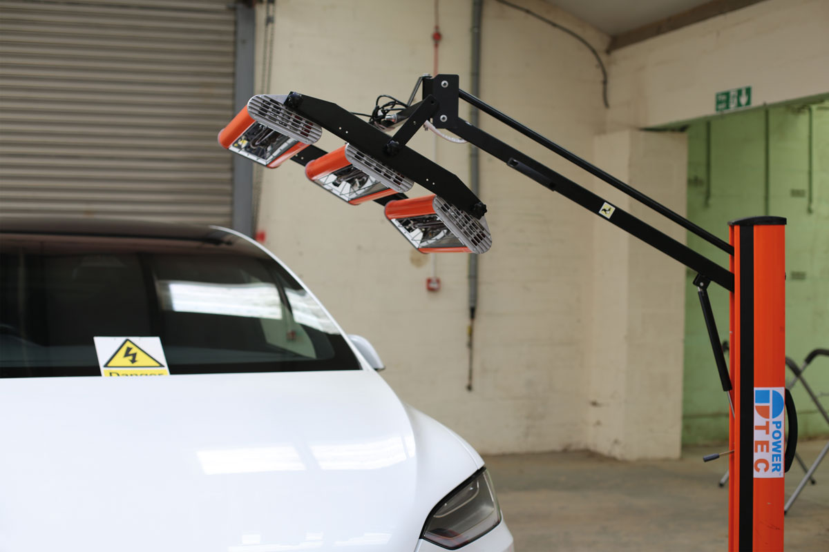 Professional bodyshops know and trust Power-TEC products and this new infrared paint drying lamp (part number 92476) is a high quality and versatile solution to quick air drying of spot and panel repairs.